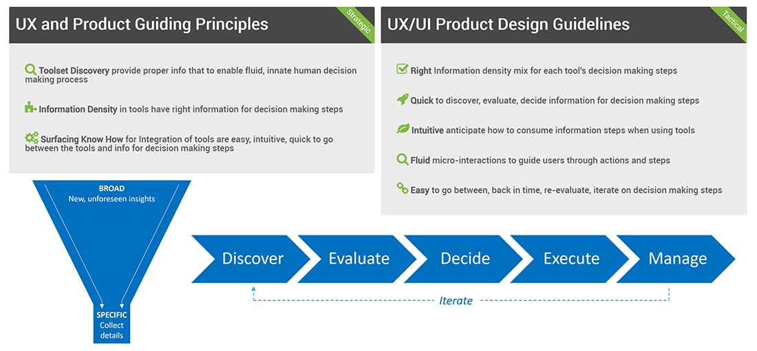 - These are organized based on customer purchase behavior and task steps of (1) Discover (2) Evaluate (3) Decide (4) Execute (5) Manage.