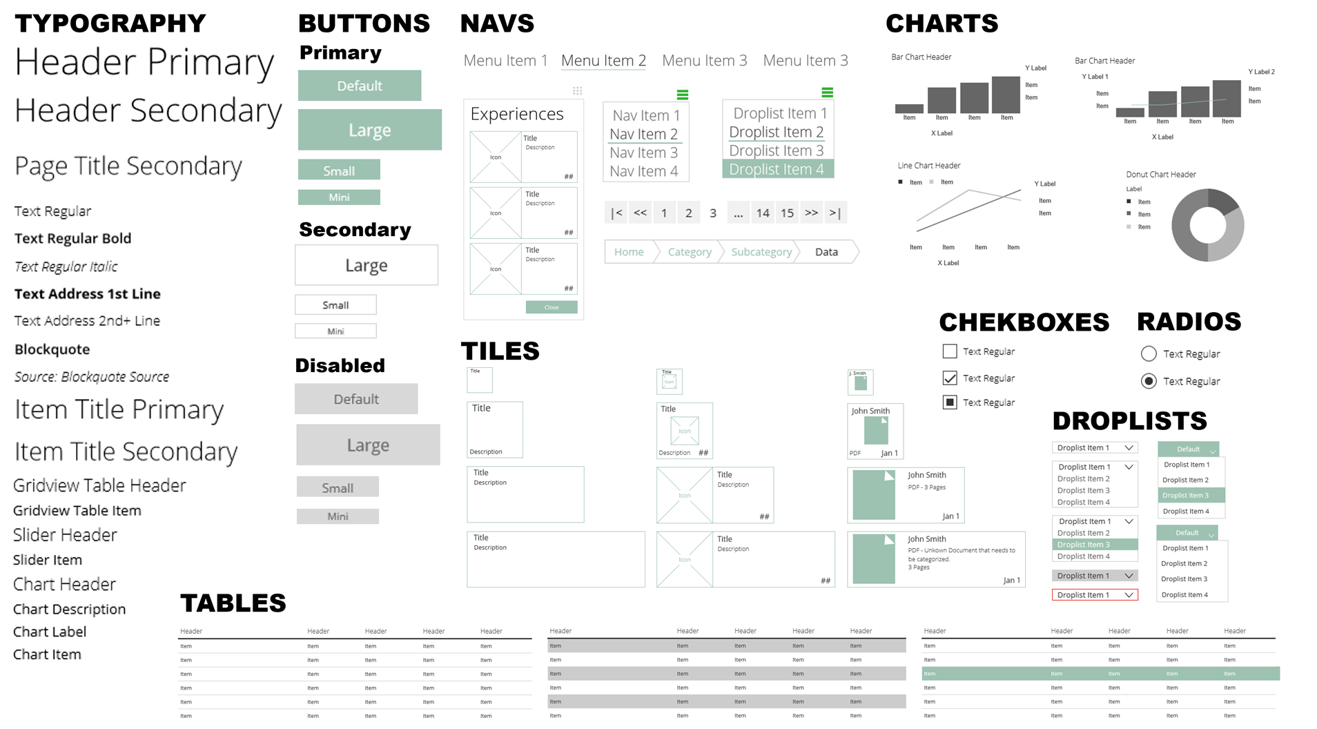 - Enterprise users are different from marketing or social media posts, so they need to have their layout and information specifically catered to how users think and go through tasks, which are capture both visually as Annotated Wireframes and with Interaction Rules in tools like Confluence and Storybook.