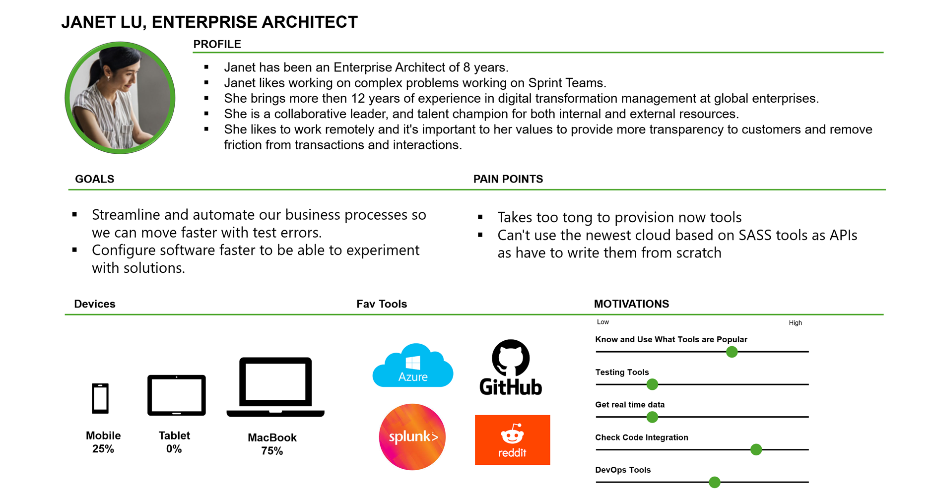 Personas and profiles are drawn from real research data, to visualize the types of customers, their wants, desires and Pain Points.