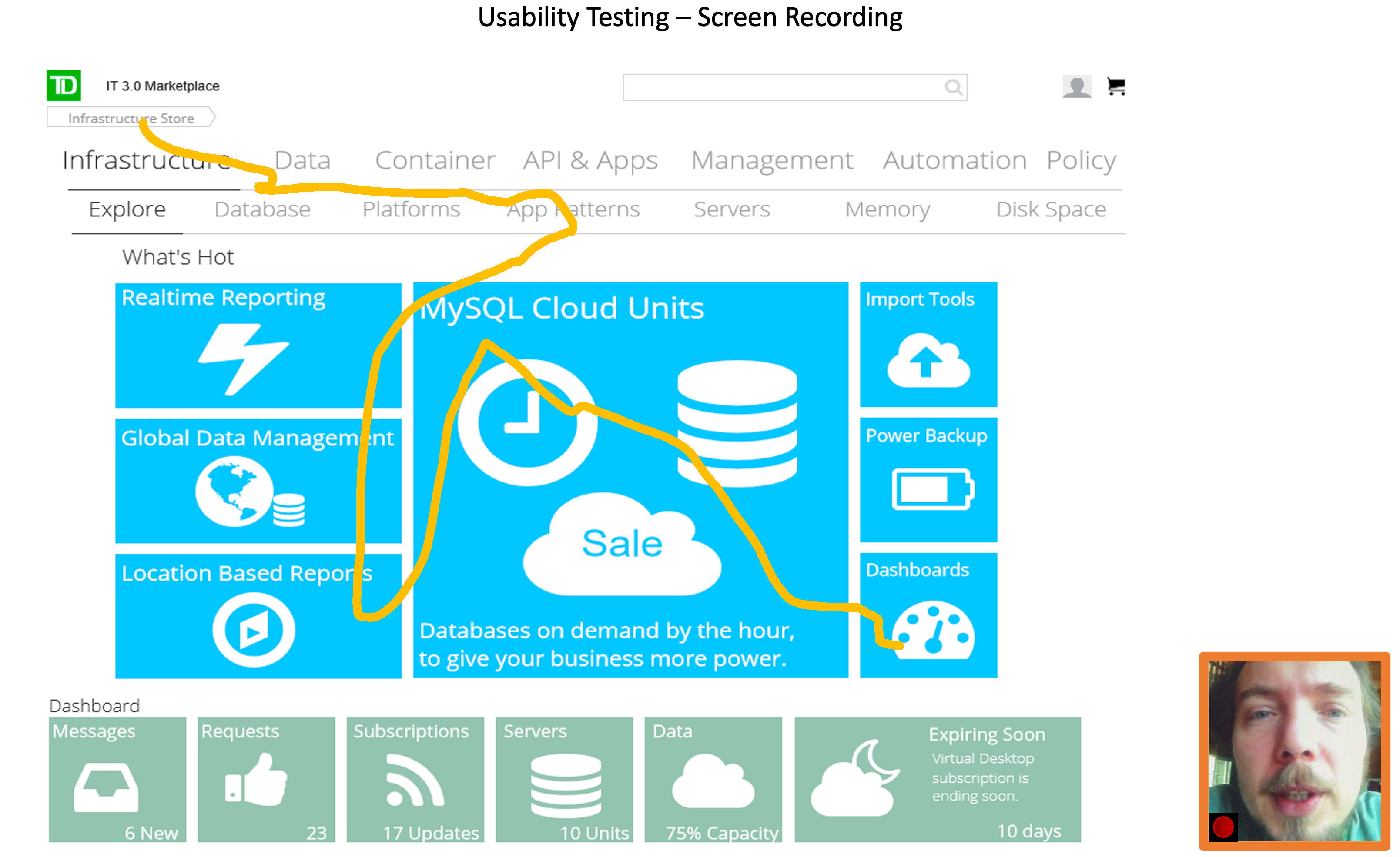 1:1 Live Usability testing, task to find and "buy" an API - Recording with mouse tracking